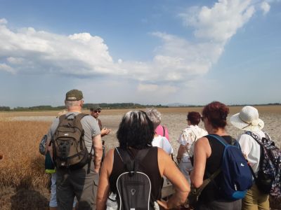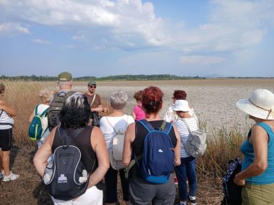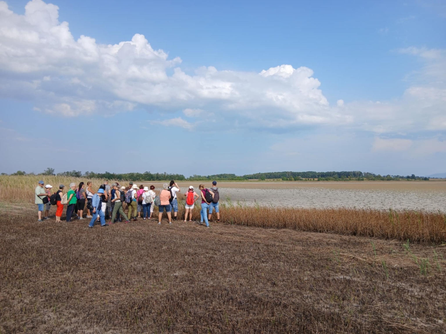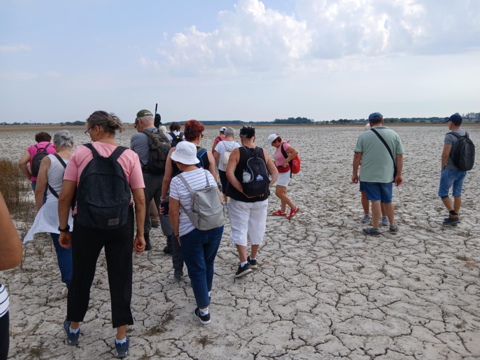A túránk időpontjában a tómederben éppen nem volt víz. Így közelről is megismerkedhettünk a jellegzetes szikes talajjal, a területre jellemző élővilággal.